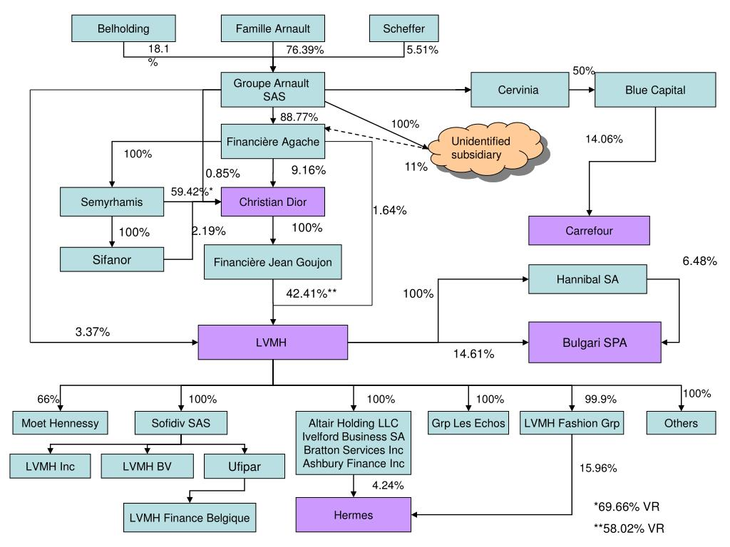 Voici à quoi ressemble son schéma au niveau de LVMH (liste des entreprises non exhaustive).